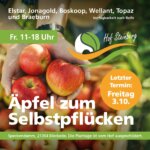 Wir haben auf eure Wünsche reagiert! Ihr könnt am nächsten Wochenende auch am Sonntagnachmittag pflücken. In unserer Plantage können an folgenden Tagen Äpfel gepflückt werden. 16.09.2023 14-17 Uhr und 17.09.2023 9-12 Uhr & 14-17 Uhr Sorten: Elstar, Gala, Boskop Weitere Termine und [...]