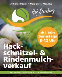 Ab dem 7.3. sind wir samstags wieder für euch da, um euch mit Holzhackschnitzeln und Rindenmulch zu versorgen.